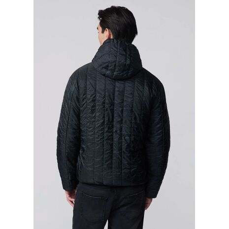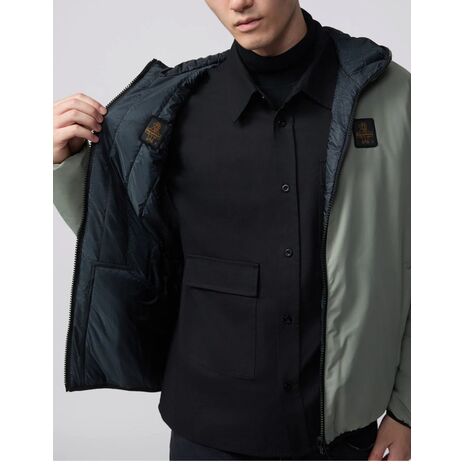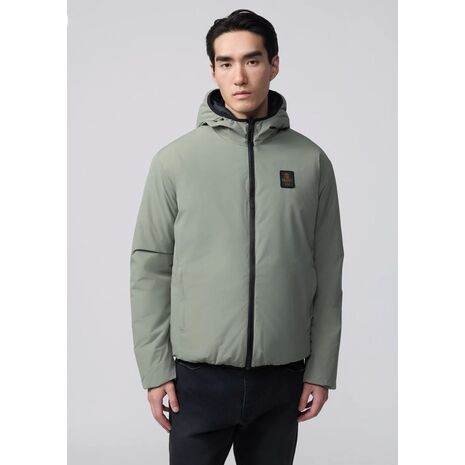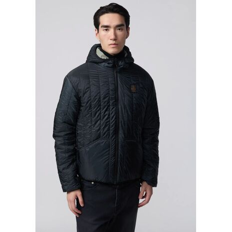 Giacca reversibile da uomo con cappuccio, pensata per garantire protezione e versatilità. Un lato liscio in Micro-Rip Stop tecnico, l’altro trapuntato verticalmente in Nylon Ripstop Diamond con tasche a toppa iconiche. Imbottitura leggera Sorona® 100gr, 100% animal free. Polsini e fondo in microfibra elasticizzata per un fit confortevole.